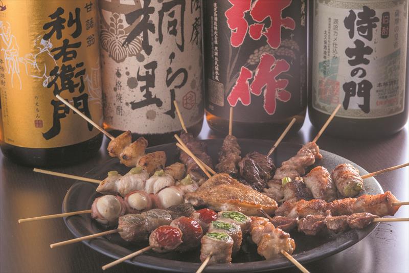 焼き鳥の串は国産銘柄鶏「霧島鶏」を使用